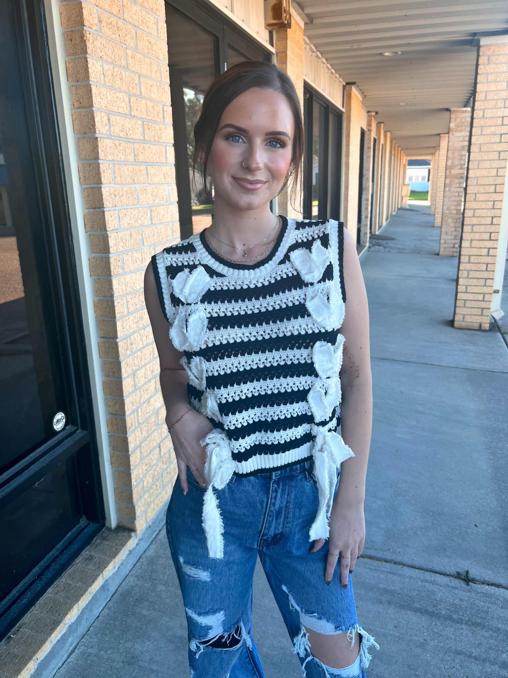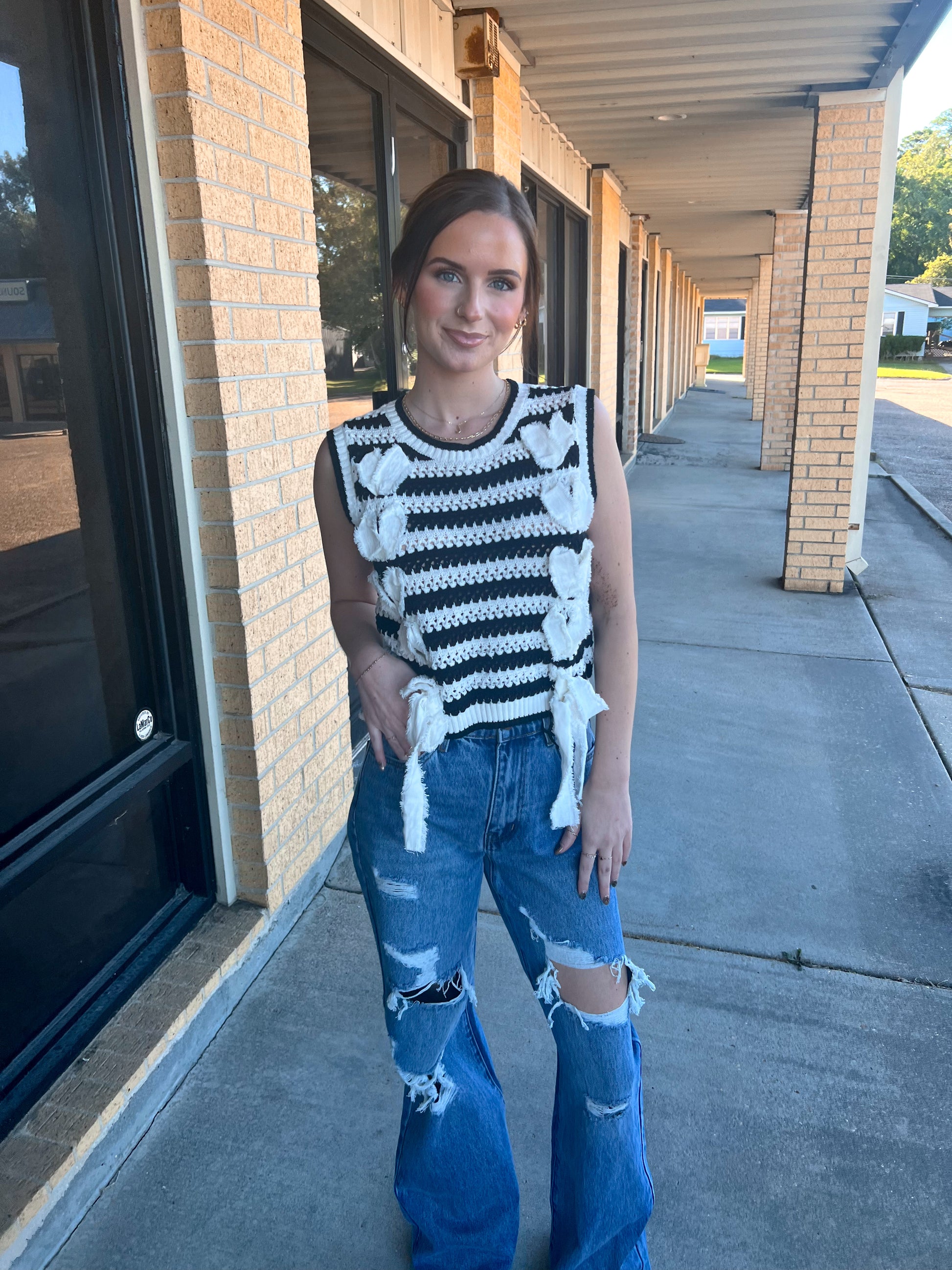 Hattie Frayed Twill with Lace Strap Thru & Bow Tie