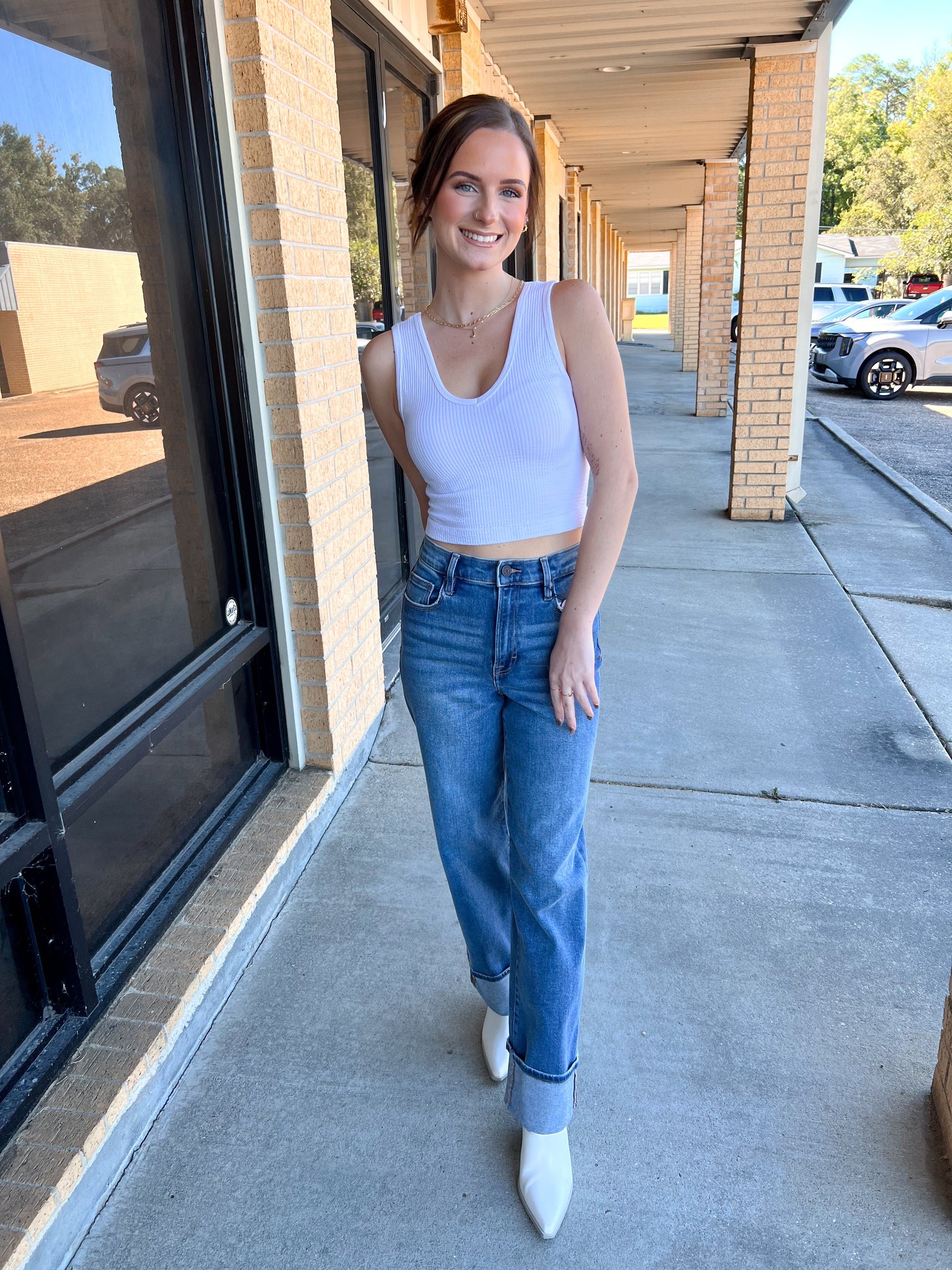 Jordan Seamless Sleeveless UV Neck Reversible Tank Top - White